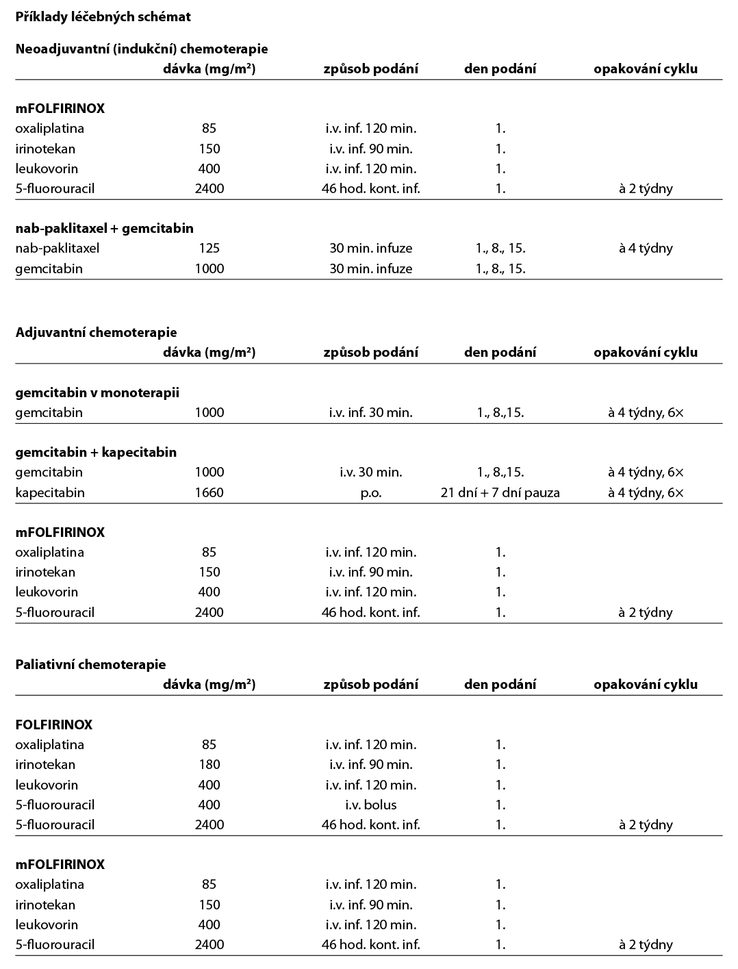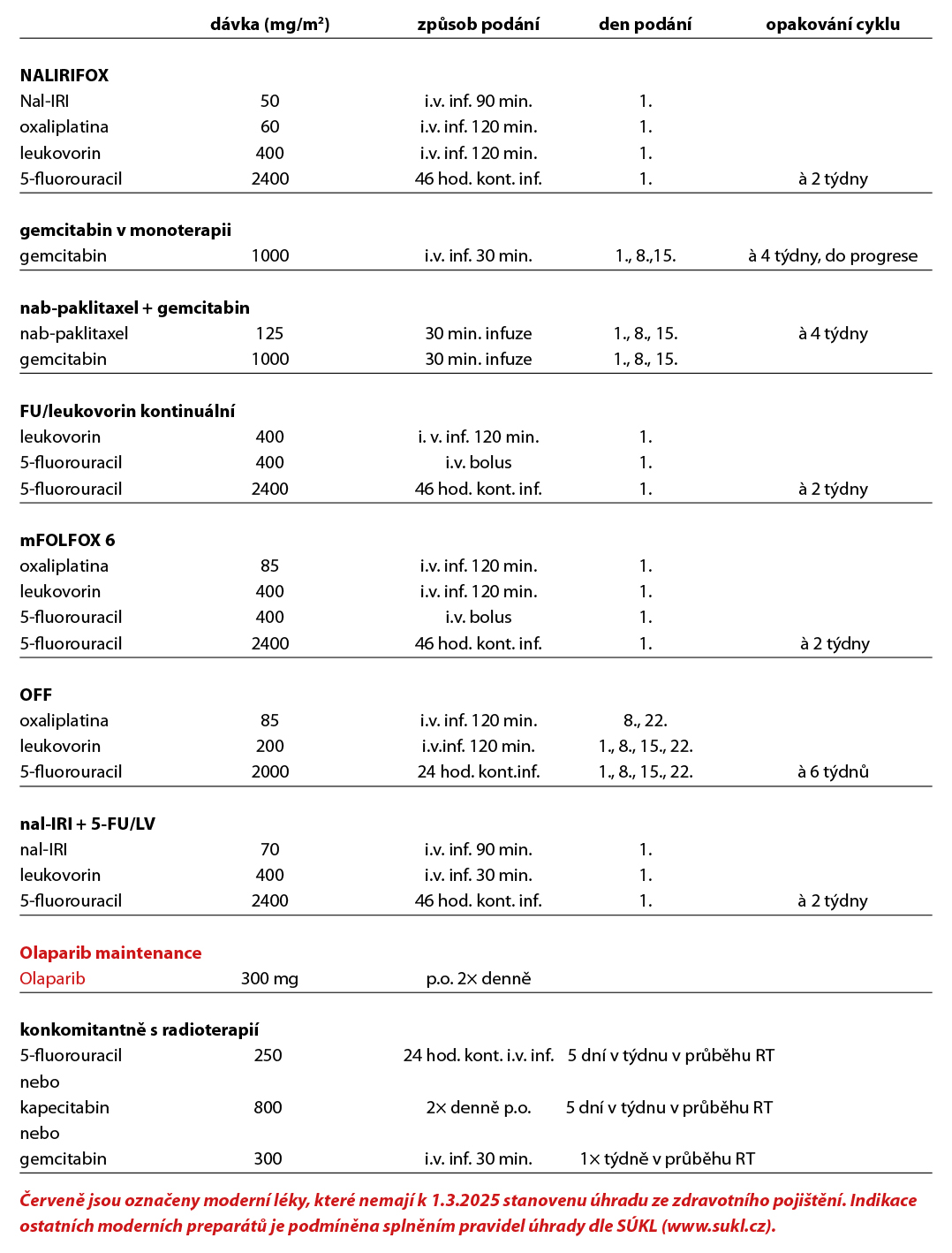 Pozn.: nab-paklitaxel má úhradu pouze u metastatického PDAC