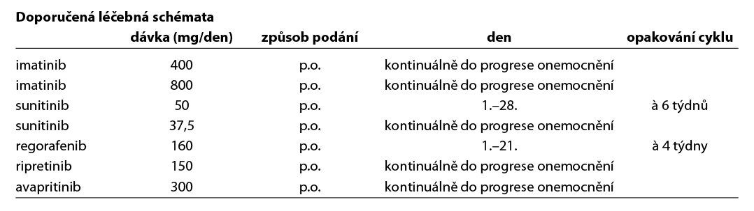 K léčbě inoperabilního nebo metastatického onemocnění se používá cílená léčba (imatinib, sunitinib, regorafenib, ripretinib, avapritinib).