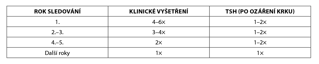 U pacientů s reziduálním, rekurentním nebo metastatickým onemocněním individuálně upravit frekvenci vyšetření dle aktivity růstu nádoru, podané léčby a hodnocení jejího efektu.