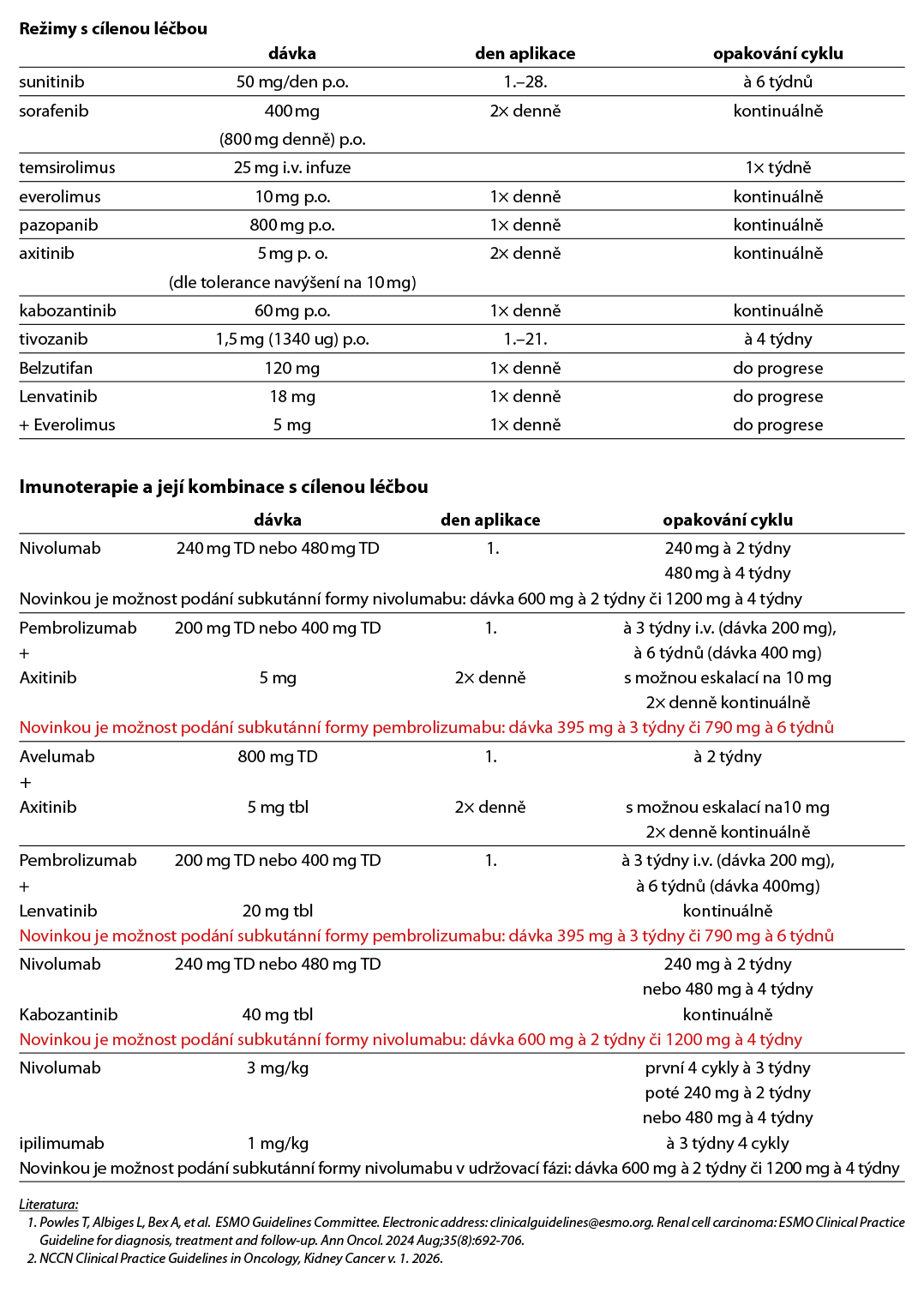 - U RCC se sarkomatoidní složkou je nutné preferovat především kombinovanou imunoterapii checkpoint inhibitory nebo kombinaci checkpoint inhibitorů s TKI, které výrazně zlepšují výsledky ve srovnání s monoterapií tyrozinkinázovými inhibitory (1; nutno dodržovat úhradové omezení).