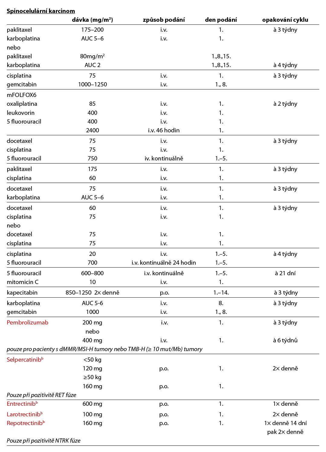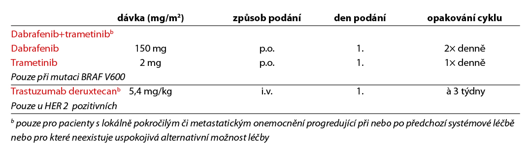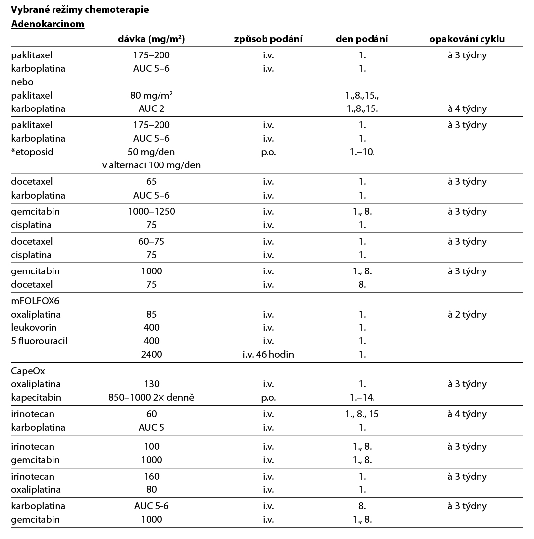Léčba jednotlivých klinických variant postižení adenokarcinomem, spinocelulárním karcinomem a neuroendokrinním nádorem neznámého origa je uvedena v následujícím přehledu.