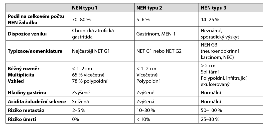 Tab. 2 – Přehled hlavních charakteristik NEN žaludku (modifikace podle ENETS)