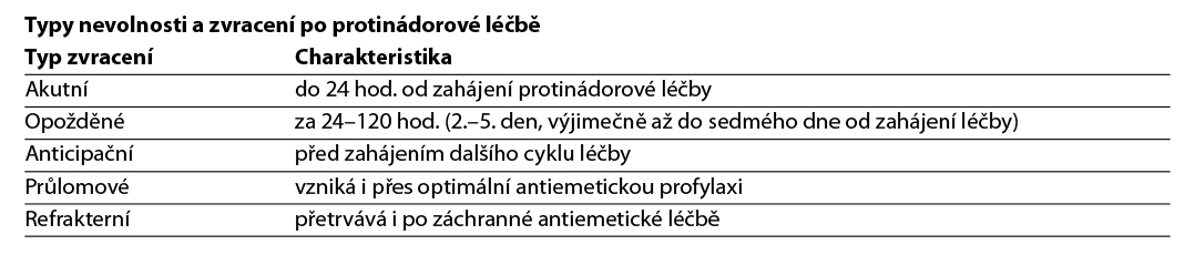 29. ZÁSADY PREVENCE A LÉČBY NEVOLNOSTI A ZVRACENÍ PO PROTINÁDOROVÉ LÉČBĚ