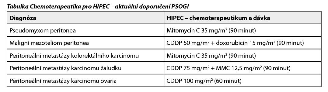 Cytoredukční chirurgie (CRS) se v kombinaci s hypertermickou intraperitoneální chemoterapií (HIPEC) uplatňuje v léčbě peritoneální karcinomatózy rozličné nádorové etiologie. Úroveň důkazů o terapeutické účinnosti těchto metod se u jednotlivých malignit peritoneálního povrchu liší, problematikou se zabývá řada probíhajících klinických studií, aktuálně doporučené léčebné postupy celosvětově koordinuje skupina PSOGI (The Peritoneal Surface Oncology Group). Správně indikované procedury CRS a HIPEC mohou u vybraných pacientů vést k výraznému prodloužení celkového přežití a u některých diagnóz i k úplnému vyléčení. Možnosti cytoredukční léčby jsou limitovány rozsahem peritoneální infiltrace a proveditelností kompletního makroskopického odstranění peritoneálních depozit. CRS/HIPEC jsou vhodné pouze pro pacienty bez viscerálních či kostních metastáz a bez závažných komorbidit, kteří jsou schopní podstoupit vícehodinovou operaci v celkové anestezii a intraperitoneální aplikaci chemoterapeutika.