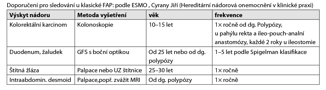 - od 25 let 1× za 2–5 let GFS a kolonoskopie,