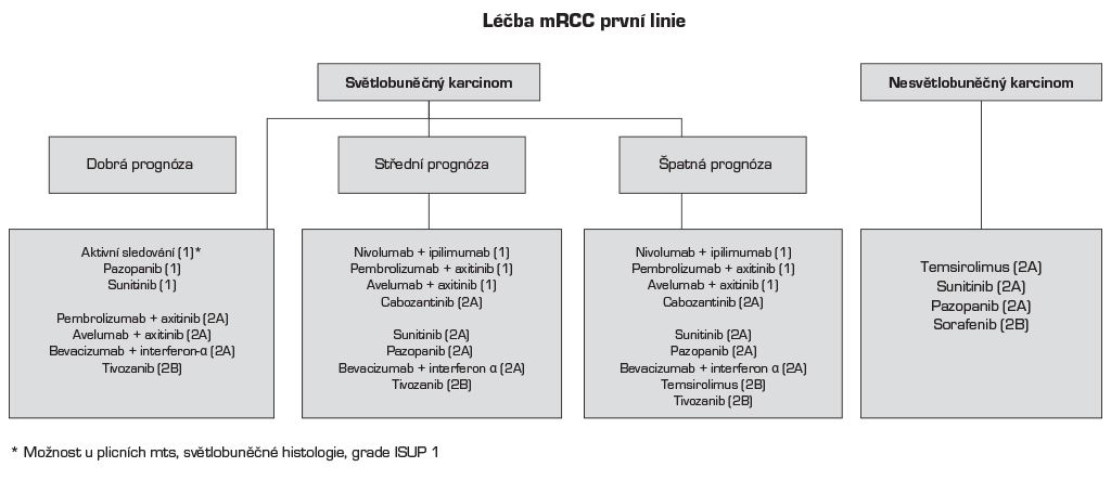Vzhledem k aktuálním výsledkům studií s prodlouženým follow-up provádíme změnu ve strategii léčby metastatického renálního karcinomu v první linii léčby- viz obrázek níže.