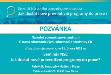 Národní screeningové centrum Ústavu zdravotnických informací a statistiky ČR si Vás dovoluje pozvat dne 21. února 2023 na Seminář NSC Jak dostat nové preventivní programy do praxe? Účast na semináři je zdarma, je však nutné se předem registrovat.