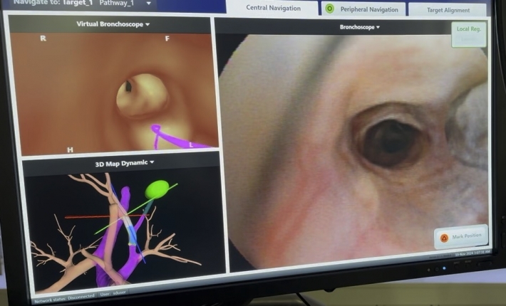 Pokud CT zachytí podezřelé ložisko, následuje bronchoskopie – vyšetření dýchacích cest pomocí tenkého nástroje s miniaturní kamerou. Lékaři využívají stále sofistikovanější navigační systémy s umělou inteligencí, které kombinují snímky CT a magnetické rezonance a vytvářejí 3D model dýchacích cest.