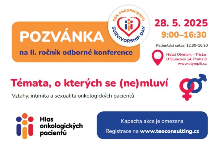- Přidat do kalendáře: 2025-05-28 09:00:00 2025-05-28 16:30:00 Europe/Prague Témata, o kterých se (ne)mluví - Vztahy, intimita a sexualita onkologických pacientů. Pacientská sekce konference TEMPO Hlas onkologických pacientů, Sekce podpůrné léčby a Sekce preventivní onkologie ČOS ČLS JEP Vás zvou na konferenci v rámci projektu TEMPO. Hlavním motem tohoto ročníku je "Společně pro kvalitnější život našich pacientů". Srdečně jsou zvány také pacientské organizace a laici se zájmem o problematiku. Hotel Olympik - Tristar U Sluncové 14, Praha 8