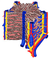 Obrázek 2: Struktura jaterního lalůčku (zvětšeno 1 000x)