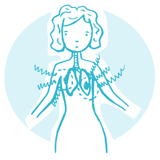 Vlastní vyšetření zahrnuje zejména vyšetření hrudníku – poslechem, pohledem a pohmatem. Důležité je se zaměřit se na vyšetření lymfatických uzlin v oblasti krku a nadklíčku. Můžeme tak najít uzliny, které jsou postiženy nádorem - ty jsou dobře přístupné dalšímu vyšetření.