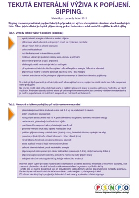 Materiál pro pacienty, leden 2012. Sipping znamená pravidelné popíjení tekutých přípravků pro výživu s kompletním obsahem všech nezbytných