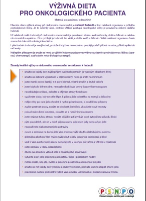 Pracovní skupina nutriční péče v onkologii vznikla pod záštitou České onkologické společnosti ČLS J.E.P. Cílem skupiny je zlepšit stav výživy onkologických pacientů. K tomuto cíli vydává i informační materiály určené pacientům, které najdete na této stránce. Otevřete a vytiskněte si dokumenty, najdete v nich mnoho rad pro výživu během vaší nemoci.