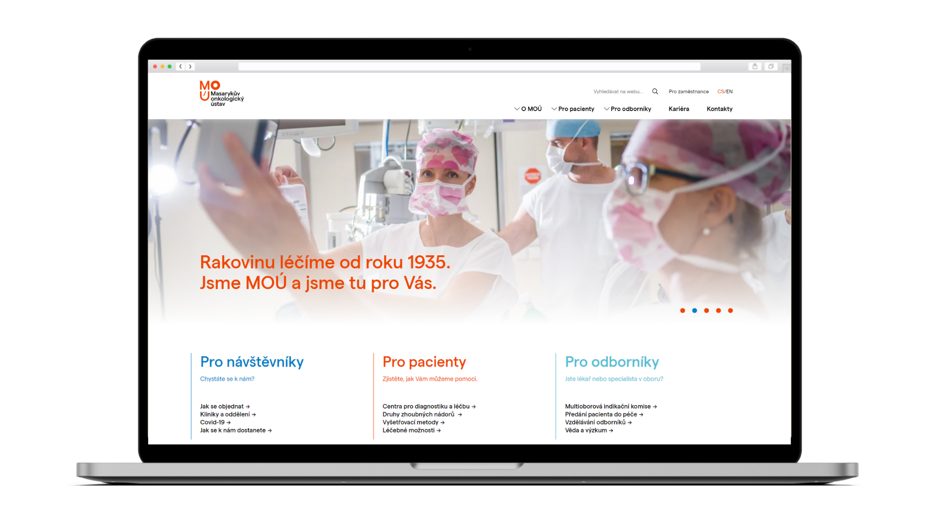 „Při tvorbě webových stránek jsme se inspirovali především u zahraničních institucí podobného charakteru, jako je ta naše. Jsme jediným specializovaným ústavem pro léčbu nádorových onemocnění v ČR. Cítíme velký závazek informovat veřejnost o léčbě a prevenci těchto onemocnění. Chceme, aby informace byly dobře strukturované a srozumitelné, proto zařazujeme řadu grafických prvků. Pro správné pochopení průběhu onkologické léčby, zkrátka co pacienta čeká, jsou vytvořena schémata. Ta poradí nemocným i jejich blízkým, kam v dané fázi onemocnění zavolat, či jak se objednat. Kromě části pro pacienty je další sekce věnovaná lékařům jiných odborností, kteří mají opět přesně popsáno, jak svého pacienta objednat na vyšetření do MOÚ a s kým z našich lékařů se mohou spojit, když potřebují například něco zkonzultovat. Samozřejmostí jsou informace i pro další odborníky o vzdělávacích aktivitách ústavu, o probíhajících vědeckých a výzkumných projektech a podobně,“ popisuje Jiří Šedo, náměstek pro strategie, komunikaci a vzdělávání MOÚ.