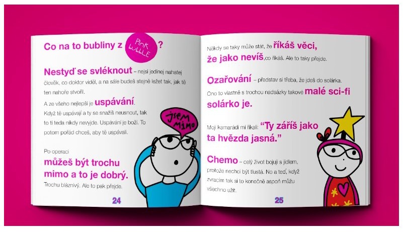 Knížka Nadačního fondu Pink Bubble, který podporuje děti a mladé lidi s onkologickým onemocněním, je napsaná samotnými pacienty. S nadhledem a humorem malí pacienti popisují a radí, jak to zvládnout v nemocnici.