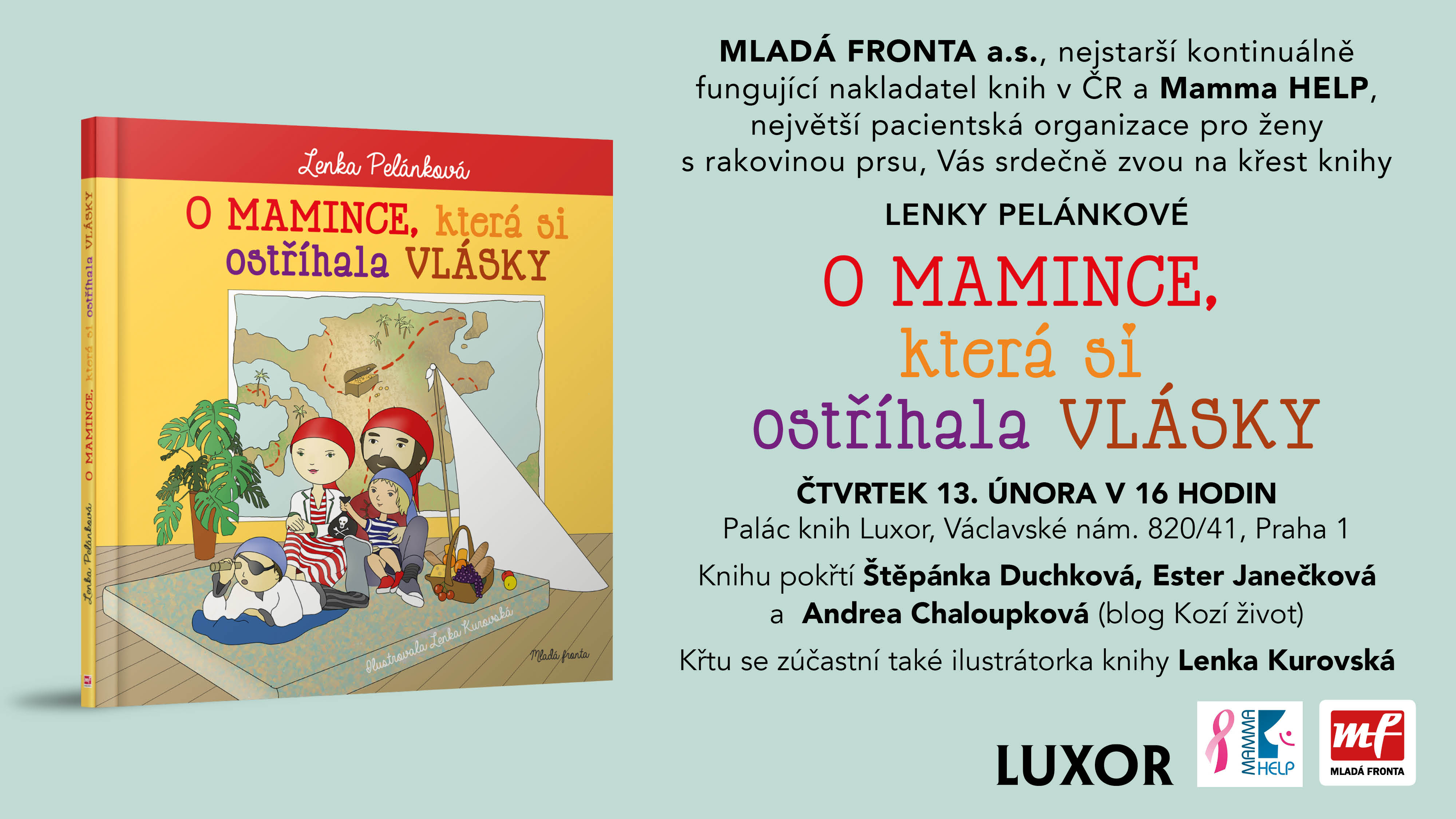 Praha 6. 2. 2020 – Ve vydavatelství Mladá fronta, divize Knihy, vychází knižní novinka s názvem O mamince, která si ostříhala vlásky. Autorkou příběhu je Lenka Pelánková, ilustrátorkou Lenka Kurovská. Kniha vznikla v rámci víceletého projektu Říct to dětem a odpovídá na otázky, jak mluvit s dětmi o maminčině onkologickém onemocnění.