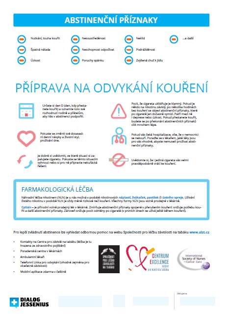 Společnost Dialog Jessenius ve spolupráci se Společností pro léčbu závislosti na tabáku, Centrem Excelence sester pro kontrolu tabáku a Mezinárodní asociací onkologických sester pro vás připravily návod jak přestat kouřit po zjištění onkologické diagnózy.