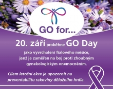 Akce GO Day upozorňující na prevenci onkogynekolgických onemocnění, se uskuteční jako každý rok ve 22 zemích světa. Mezi ně patří i ČR, kde letos GO Day proběhne v Praze, v neděli 20. září 2020. Na cyklojízdu hlavním městem zakončenou koncertem skupiny Holki se vydají lékaři, pacienti, známé osobnosti, novináři i široká veřejnost. Společně tak poukáží na důležitost prevence a vyjádří solidaritu ženám, které s onkologickým onemocněním bojují. Pražský GO DAY 2020 se již podruhé v řadě zaměří na prevenci rakoviny děložního čípku, kterou v ČR ročně onemocní asi 800 žen. Zbytečně, tomuto nádoru je totiž možné téměř vždy předejít – a to kombinací pravidelných gynekologických vyšetření, vakcinace proti HPV u dívek a chlapců a provedením HPV DNA testu namísto klasické cytologie.